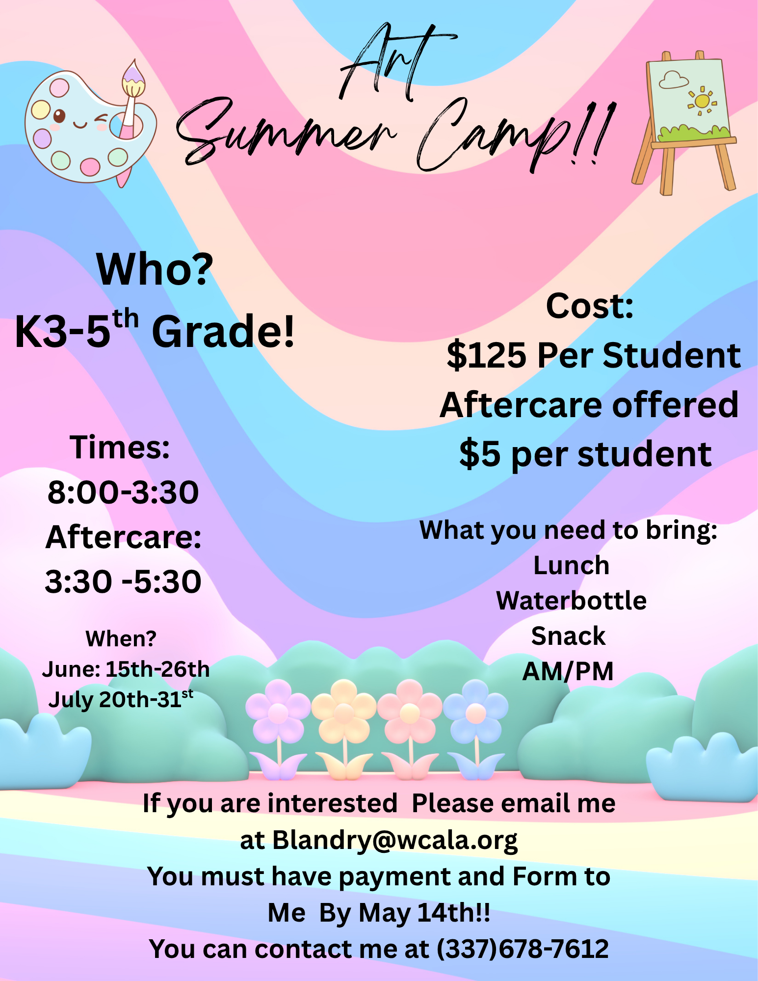 | Cost | $125 per student Aftercare Offered $5 per student |